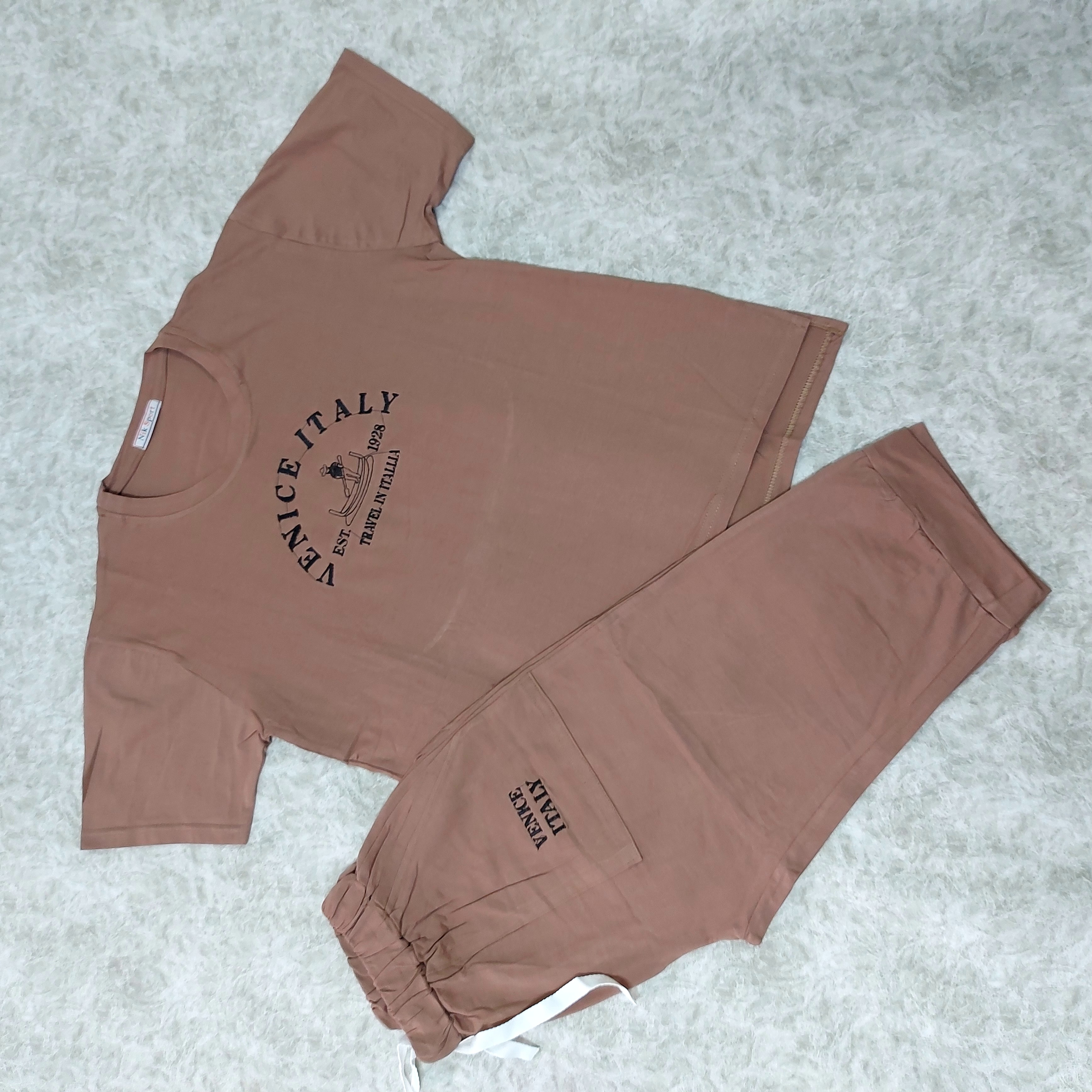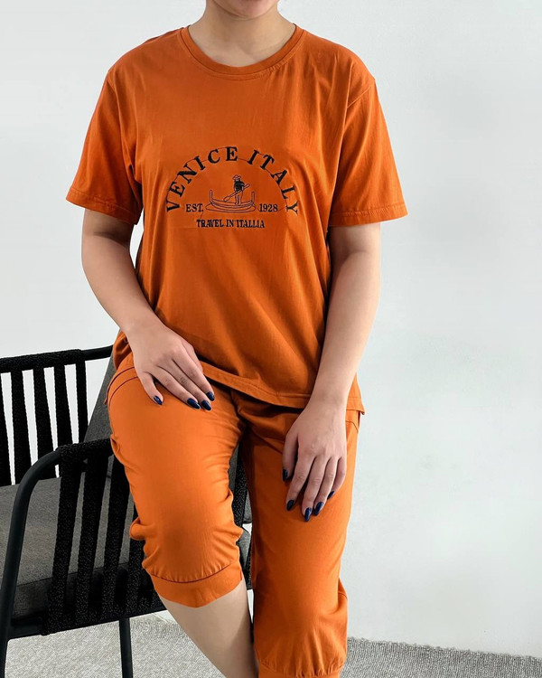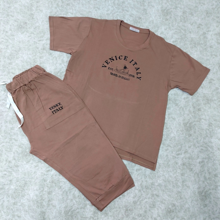 ست تیشرت و شلوارک برمودا ونیز آجری