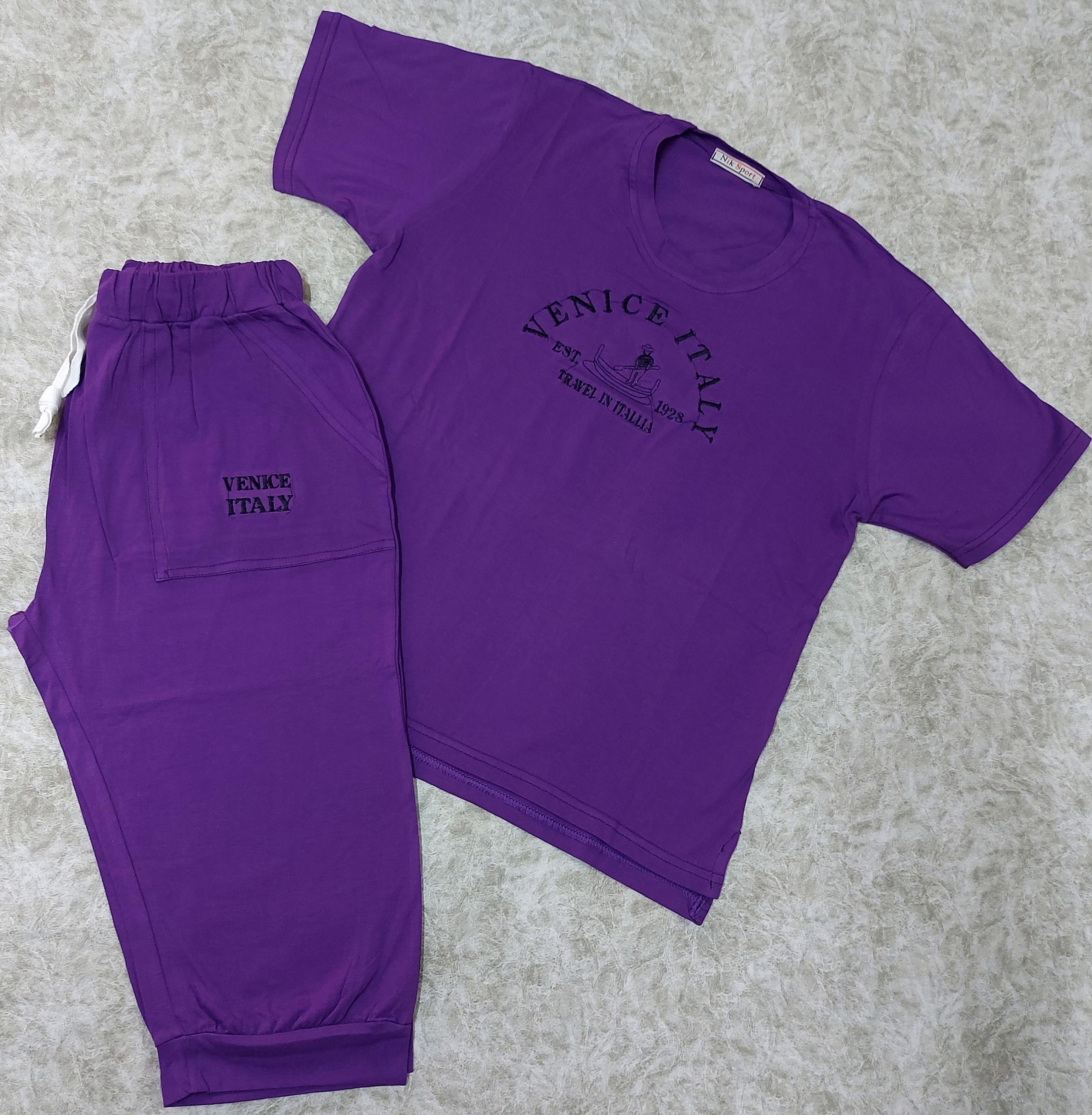 ست تیشرت و شلوارک برمودا ونیز بنفش